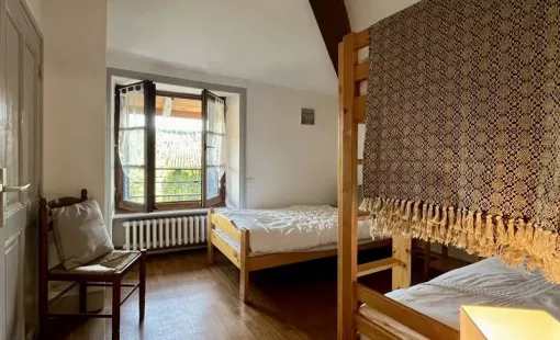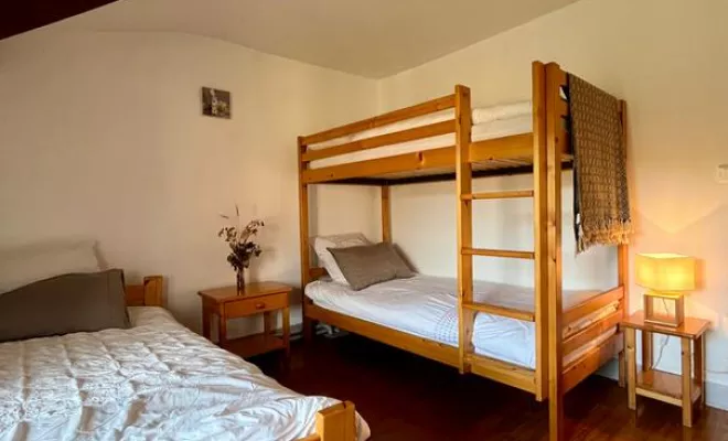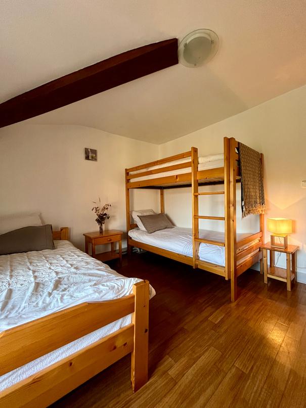 Notre logement dispose de 7 chambres spacieuses, chacune offrant une atmosphère personnalisée. Une cuisine équipée (frigo, congélateur, four, micro-ondes, cafetière, bouilloire, grille-pain, lave-vaisselle, plaques de cuisson) permet de cuisiner en toute autonomie. Le séjour réunit les hôtes autour d’une grande table, d’un salon convivial et d’une décoration chaleureuse.